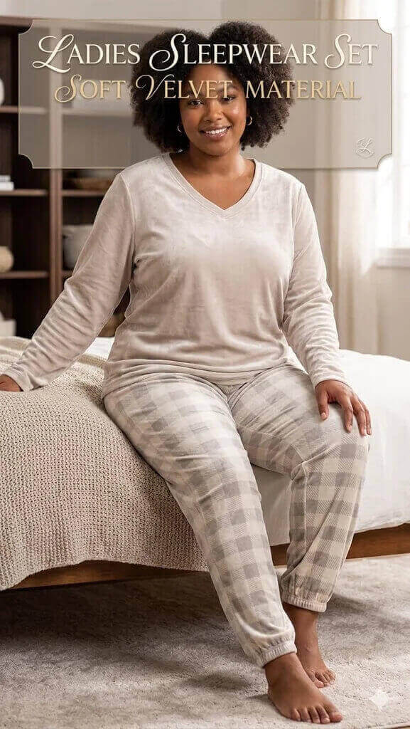 Drift off in comfort and style with our Ladies Soft Velvet Sleepwear Set
