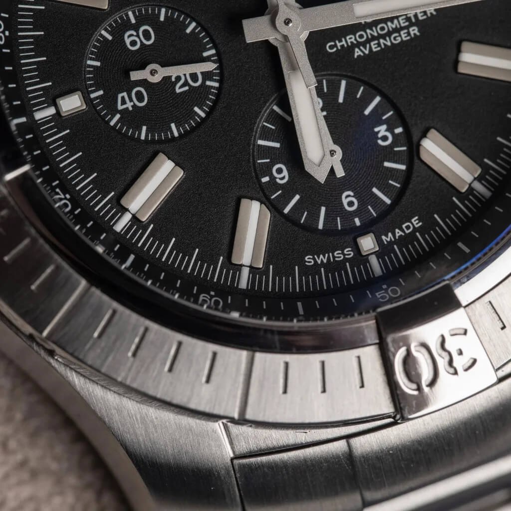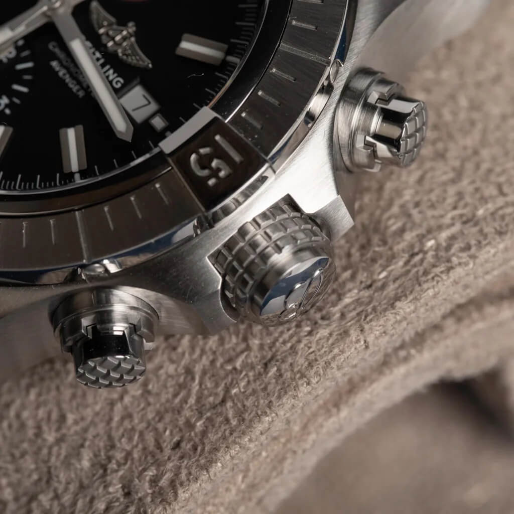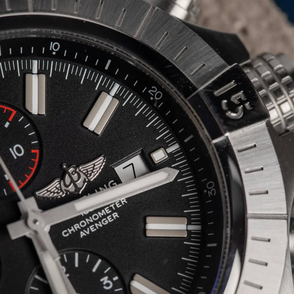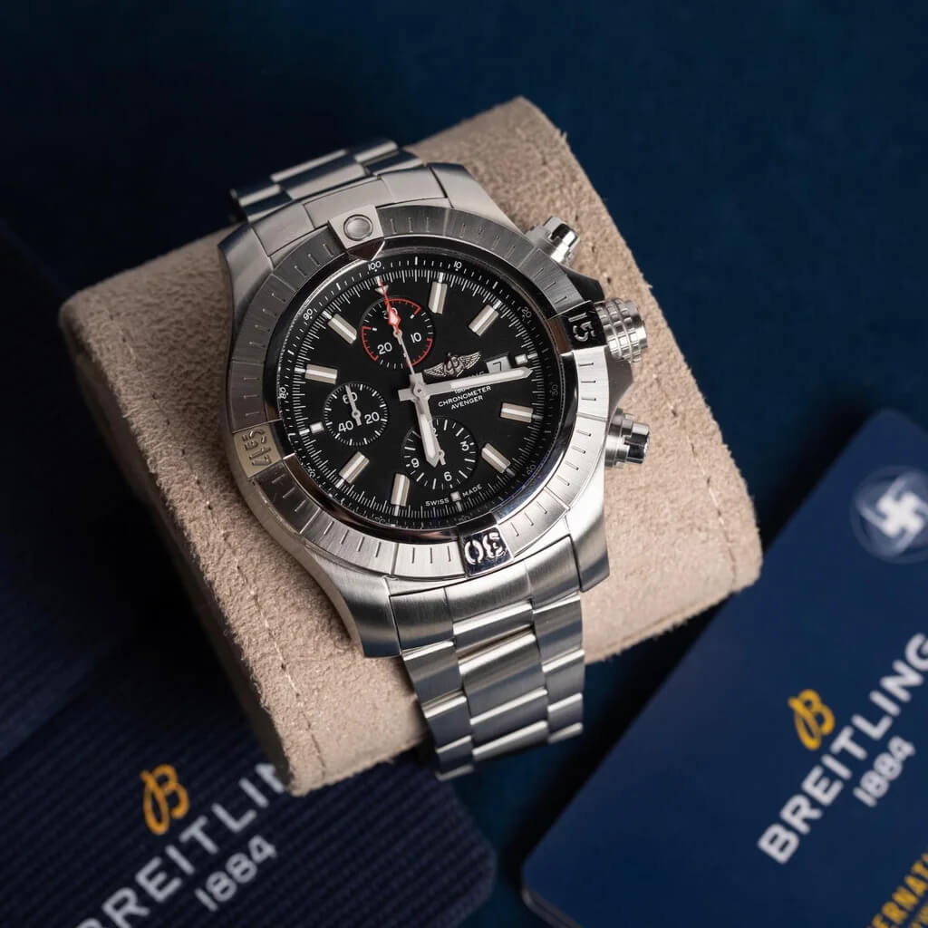 The Breitling Super Avenger Chronograph 48 A13375 is a bold statement of power and precision. With its massive 48mm stainless-steel case, high-performance chronograph movement, and 300m water resistance, it delivers unmatched durability and distinctive Breitling style for professionals and adventurers alike.